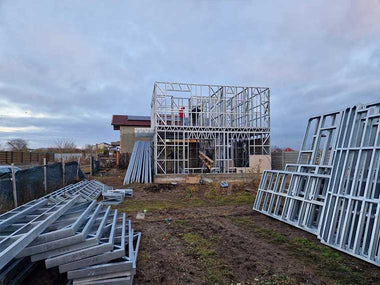 O componenta importanta a portofoliului de lucrari Wolf Construct este reprezentata de case pe structura metalica, aflate in diferite faze de constructie. Aceste proiecte reale sunt realizate pentru beneficiari care urmaresc o executie rapida, flexibilitate in proiectare si un nivel ridicat de siguranta structurala. Exemplele prezentate de case rezidentiale pe schelet metalic Wolf Construct includ atat case parter, cat si case cu etaj, documentate pe etape de executie precum montajul structurii metalice, realizarea peretilor si a acoperisului, instalarea traseelor de instalatii, finisaje si alte lucrari conexe. Daca esti in cautarea unei solutii similare pentru viitoarea ta locuinta, poti consulta lista noastra actualizata de case pe structura metalica si proiecte de case, unde vei gasi modele predefinite si detalii tehnice pentru fiecare configuratie.